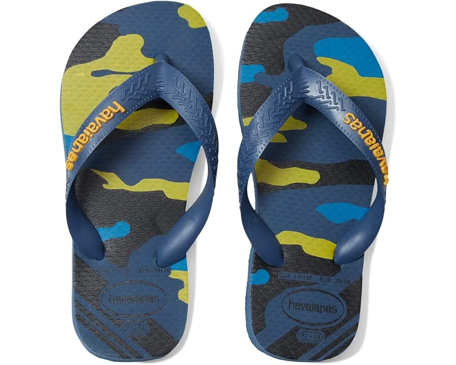 Be it an adventurous day by the beach or a laid-back day by the pool, the Havaianas® Kids Top Camo Flip Flop Sandals are sure to bring a fun touch to your junior’s look while offering them the desired comfort all day long.SKU: #9841410Synthetic upper and lining.Camo-printed, cushioned footbed with textured rice pattern.Easy slip-on style with thong silhouette.Open toe design.Synthetic outsole.Made in Brazil.Product measurements were taken using size 27-28 (US 11-12 Little Kid), width M. Please note that measurements may vary by size.Measurements: