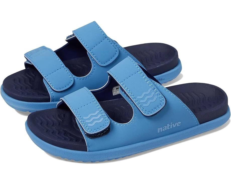 Verified vegan construction.SKU: #9818473Native Shoes has partnered with Zappos for Good to collect your well-loved Native Shoes and recycle them into community playground materials. It’s easy, find out how to request a prepaid shipping label: zapposforgood.org/recycle/nativeAs a PETA certified approved vegan brand, Native Shoes exists to create happiness and enlighten lives one Beast Free friendly step at a time. Your little one will enjoy all the comfort that they desire during the warmer days when you complement their outfit with the Native® Kids Shoes Frankie Sugarlite Flat Sandals.Satin PU and EVA upper.Synthetic lining.Dual-density Sugarlite™ EVA insole offers ultimate cushioning comfort.Functional hook-and-loop strap closures.Open round toe.Two-part EVA and rubber outsole.Imported.Product measurements were taken using size 11 Little Kid, width M. Please note that measurements may vary by size.Measurements: