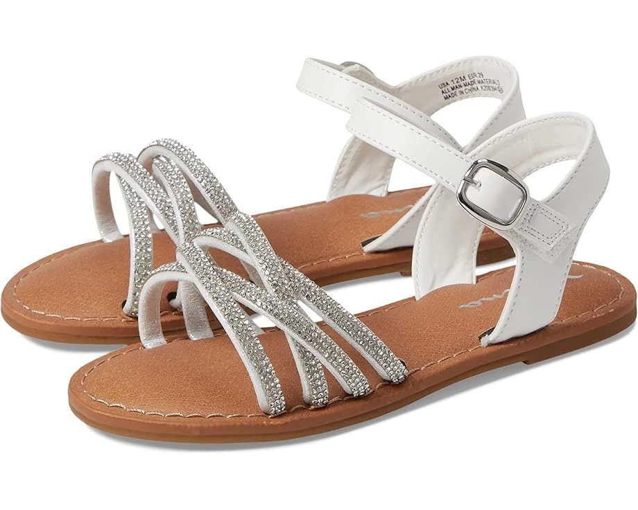 Provide ultimate comfort and a soft-touch feel to your feet by wearing Nina® Kids Tangina Sandals.SKU: #9848752Man-made upper.Man-made lining and insole.Open round toe.Strappy upper with rhinestone detailing.Strap and buckle closure.Brand logo on insole.Man-made outsole.Imported.Product measurements were taken using size 12 Little Kid, width M. Please note that measurements may vary by size.Measurements: