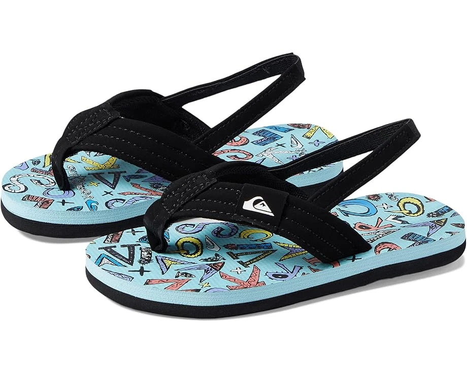 From lazy island days to casual campfire nights, simplify his summer with the essential style of the Quiksilver® Molokai Layback sandal!SKU: #8456800These open-toe, thong-style sandals feature flexible three-point construction, a supple synthetic backstrap, and a slip-resistant textured footbed. Pop color pin lines in sidewall complement footbed colorway.Rubber outsole for long-lasting wear.Imported.Product measurements were taken using size 9 Toddler, width M. Please note that measurements may vary by size.Measurements: