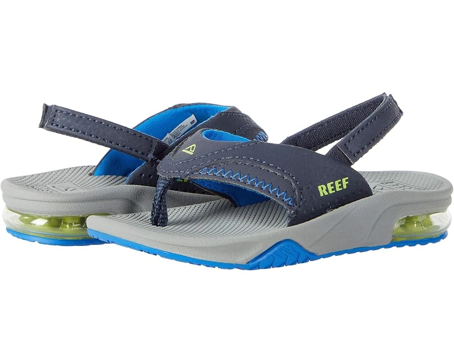 These Reef® Kids Little Fanning slip-on sandals pack in everything that makes the Fanning one of the bestselling sandals. With water friendly synthetic padded straps, soft webbing lining for extra comfort, the signature heel airbag and a backstrap. Available in three color options.SKU: #9469983Synthetic upper, insole and outsole.Textile lining.Imported.Product measurements were taken using size 3-4 Infant/Toddler, width M. Please note that measurements may vary by size.Measurements: