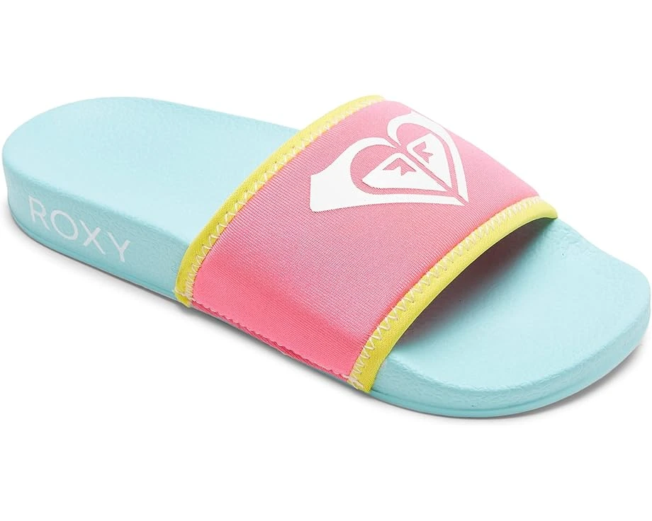 Add some sunshine to your day with the Roxy Kids® Slippy Neo sandals. SKU: #9498418Slip-on styling with an open, round-toe silhouette. 100% synthetic multi-colored upper with the Roxy® logo. Comfortable textile lining. EVA outsole with brand logo. Imported. Product measurements were taken using size 11 Little Kid, width M. Please note that measurements may vary by size.Weight of footwear is based on a single item, not a pair.Measurements: