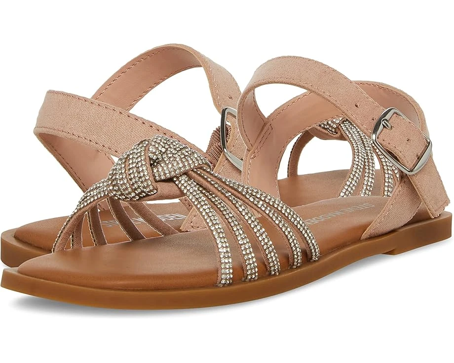 With rhinestone detailing on the upper, the Steve Madden® Kids Knot Sandals keep you comfy. SKU: #9872447Fabric upper.Synthetic lining.Ankle strap with buckle closure.Round toe design.Rubber blended outsole.Imported.